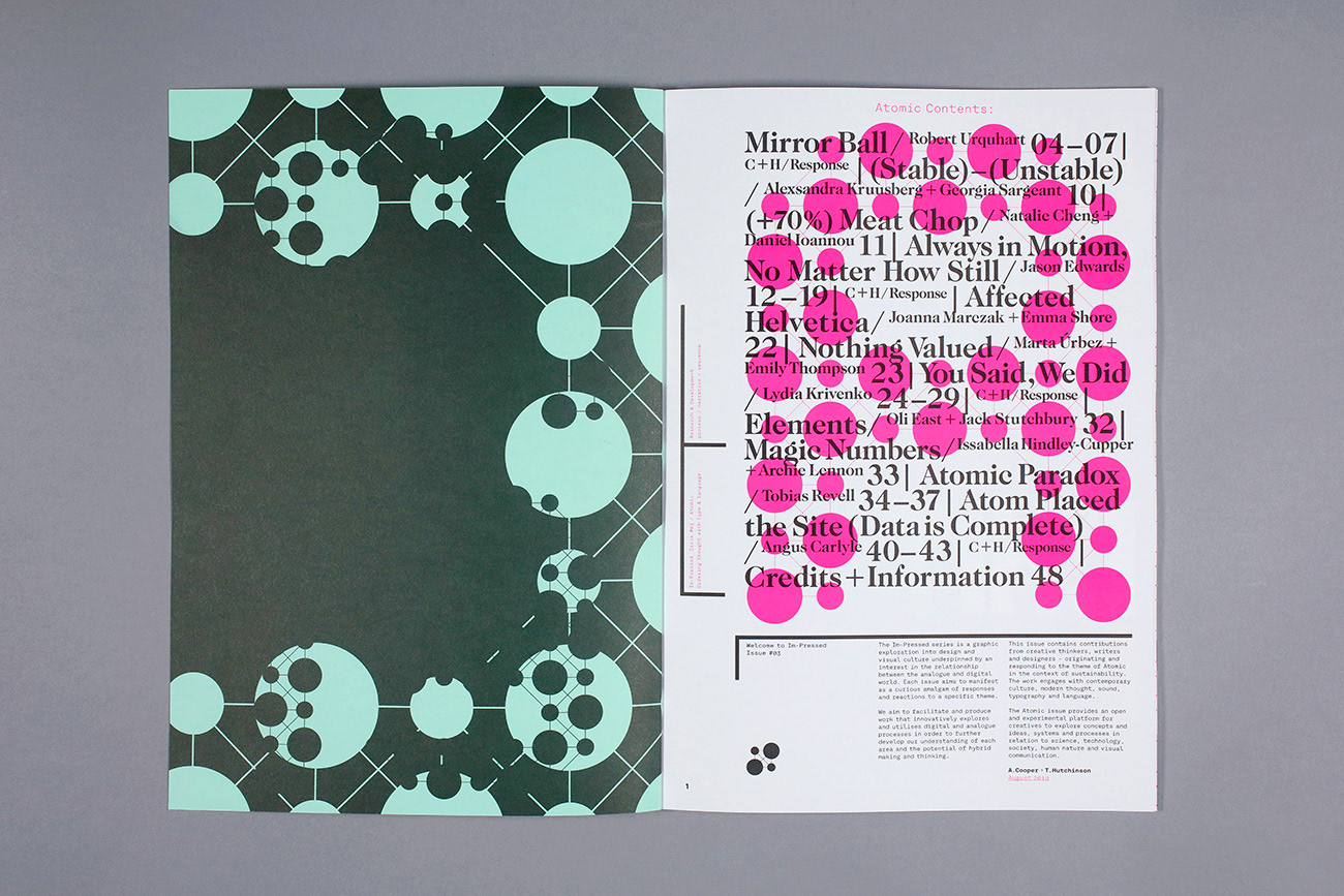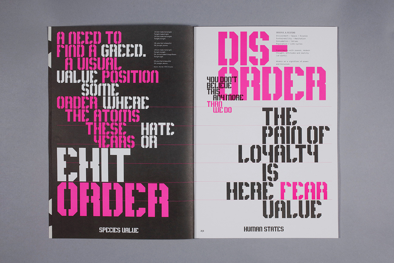 Editorial design for the Atomic publication—an exploration into contemporary thinking and responses to the them of sustainability. Launched as part of the London Design Festival 2019.