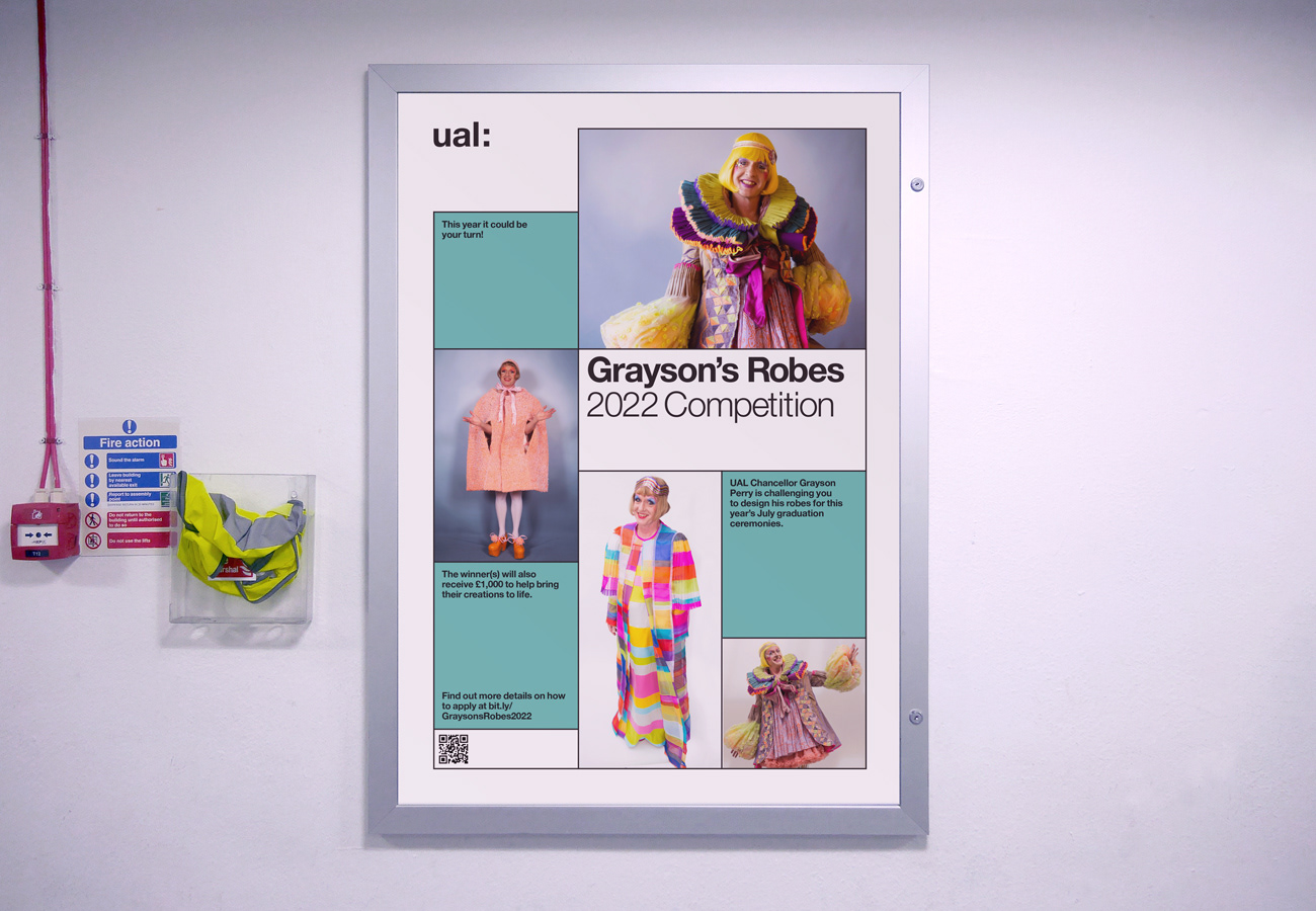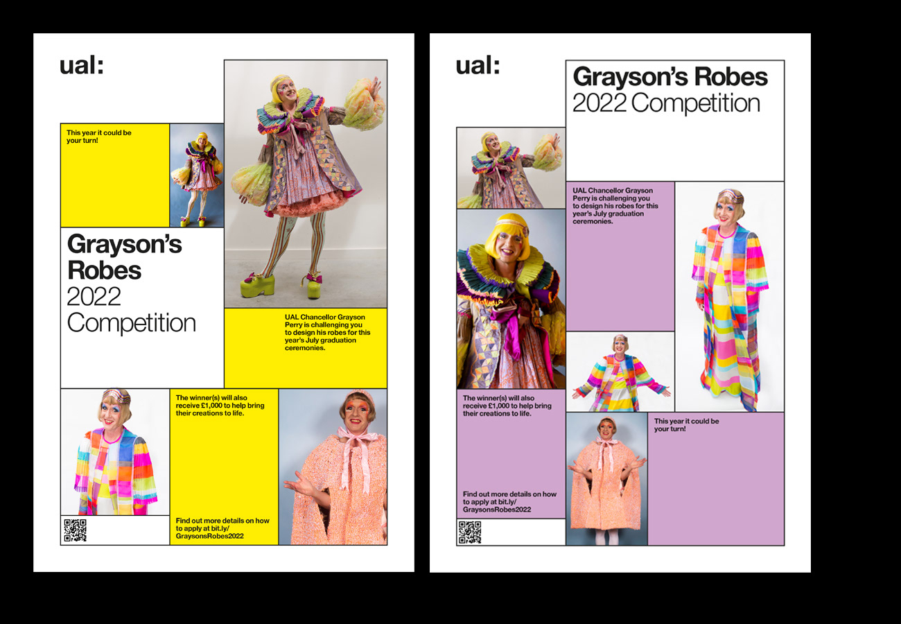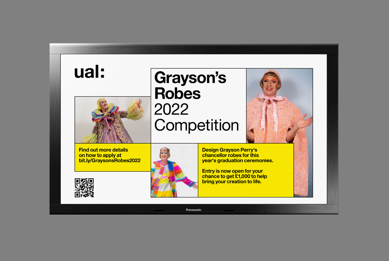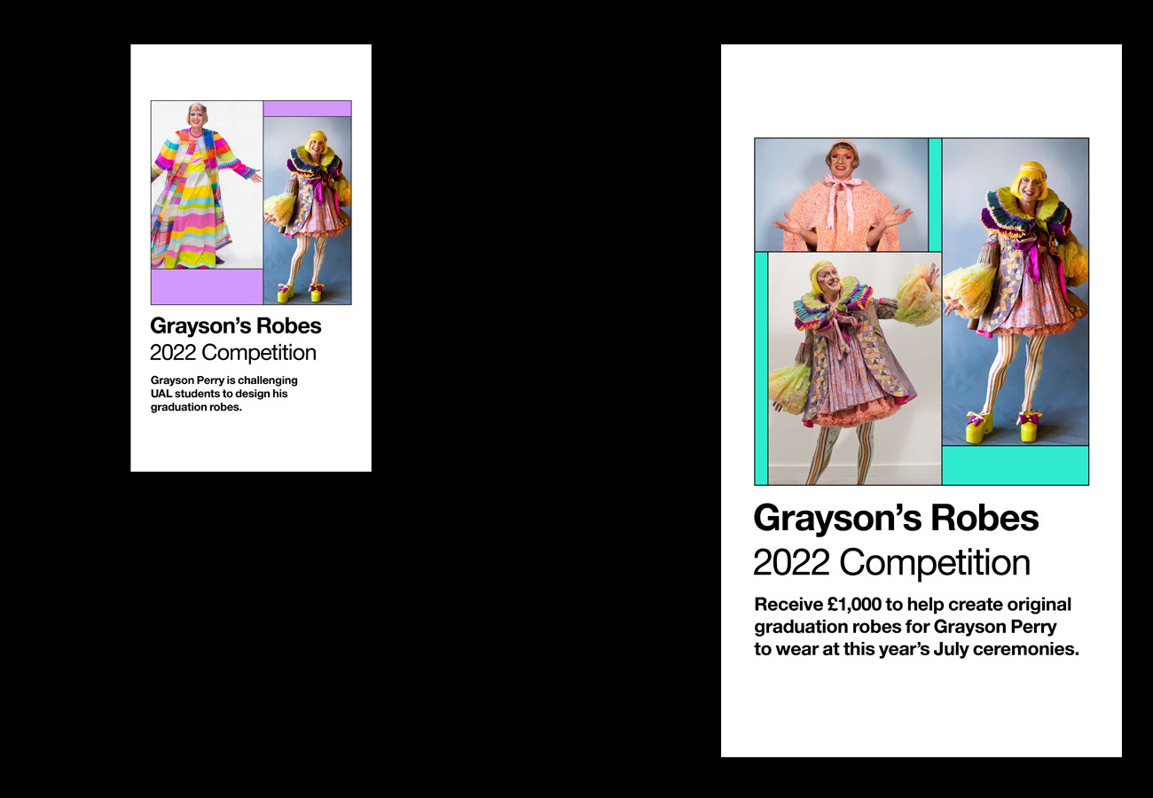 A camapign design to promote the annual competition for creatives to design Grayson Perry's robes for the graduation ceremonies at UAL. The campaign worked over print and screen formats to deliver a dynamic delivery of the visual concept.