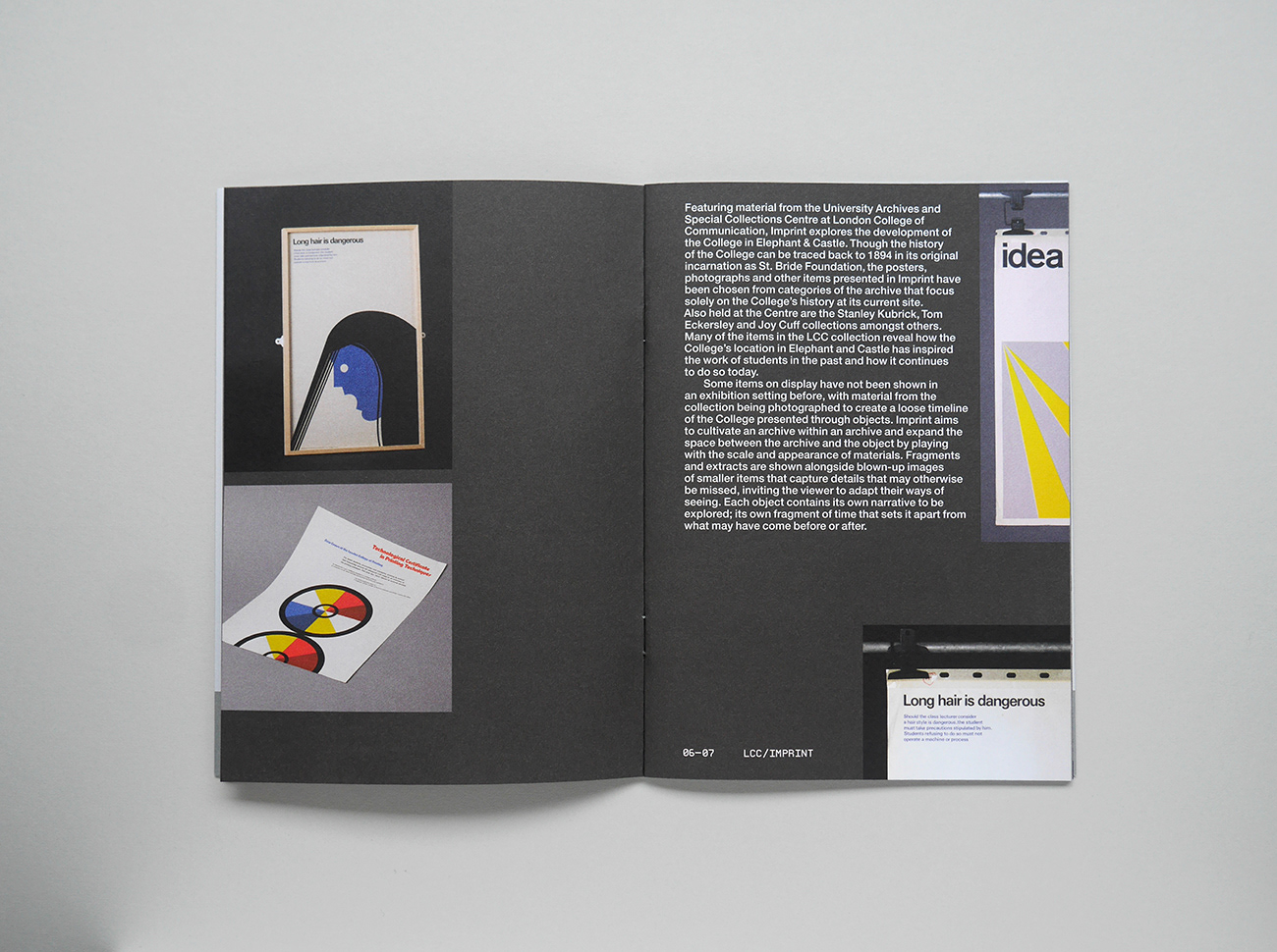 The catalogue is a printed reference publication to accompany the archival exhibition at the LCC. The content, images and text tell a story of design work produced by staff and students from the college over the last 50 years.