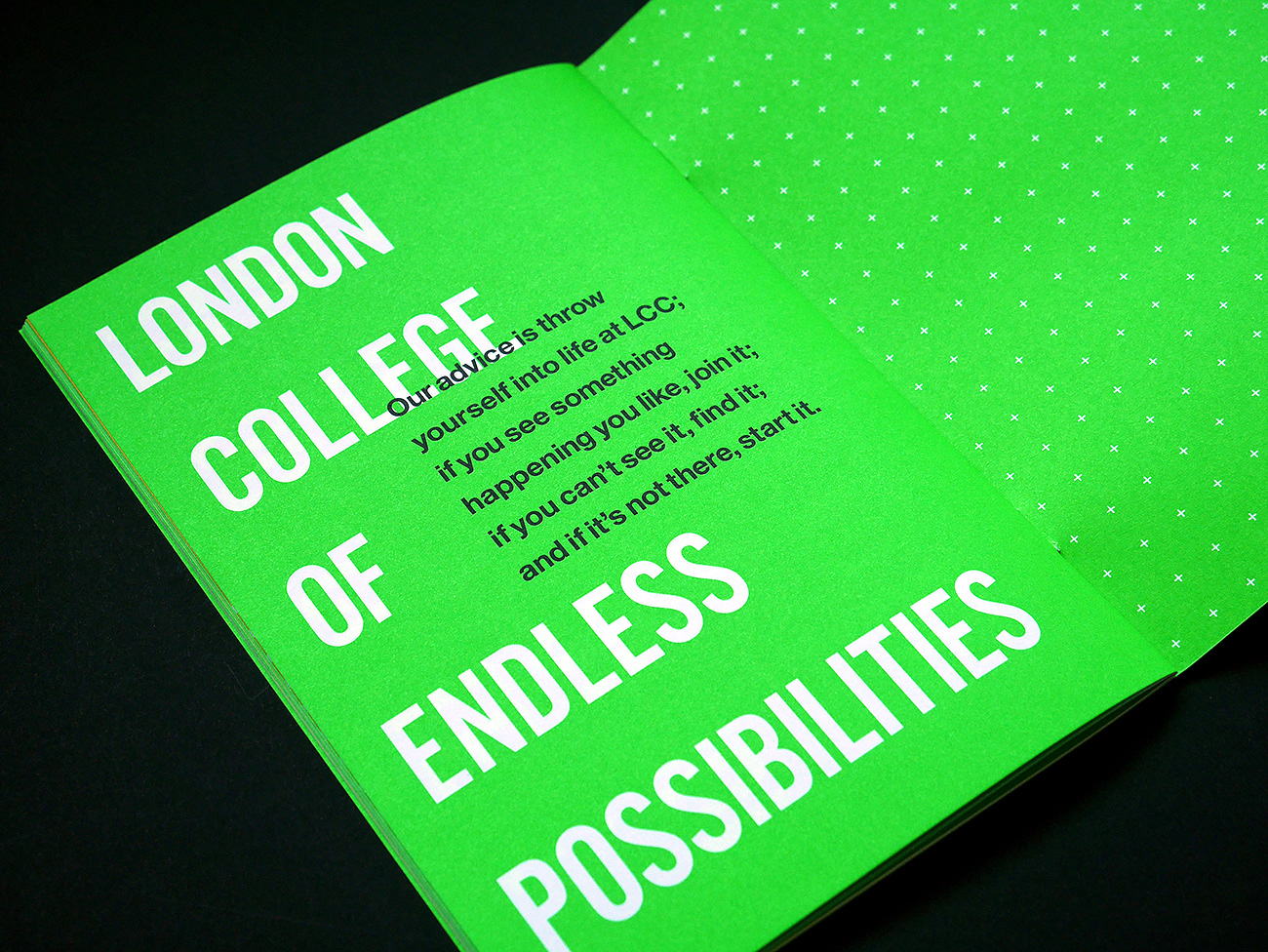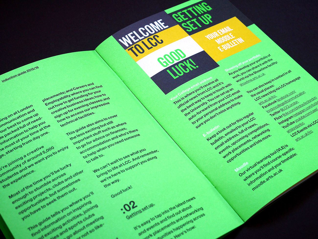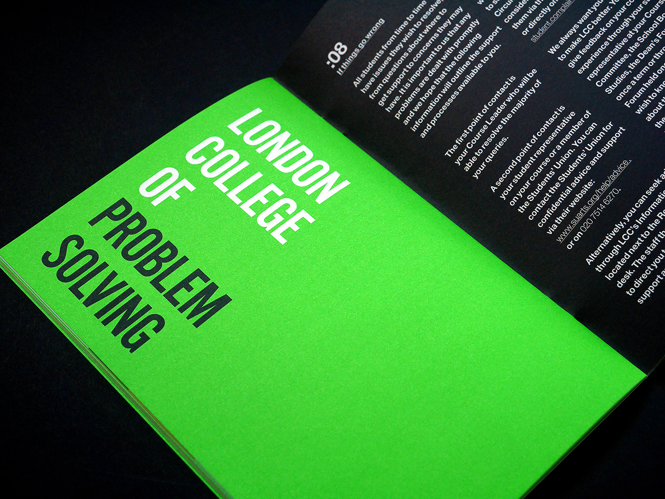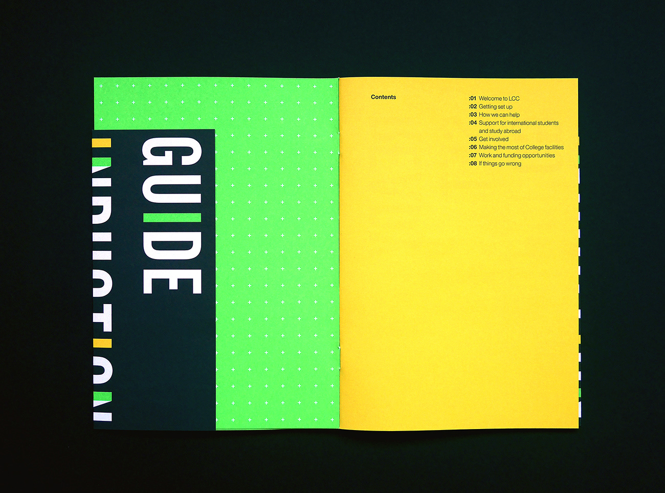 Editorial publication for the current year of students at LCC. The document offers assistance and guidance to the wide range information available on the campus. The design is required to be highly visible and easily navigable.
