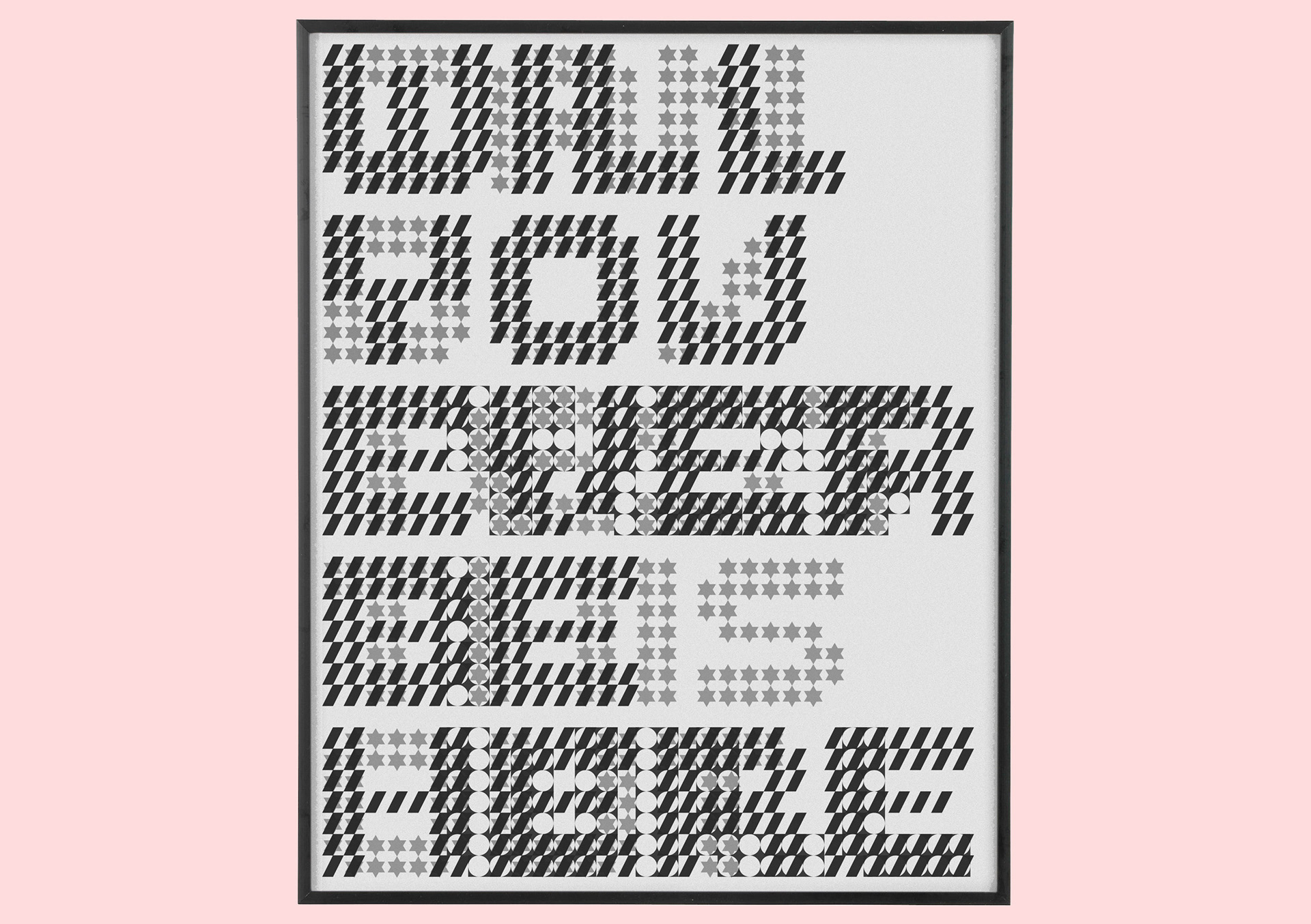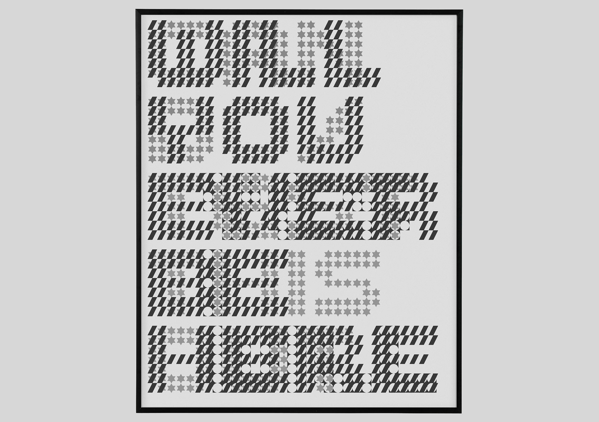 Inter–laced is the follow project up to the language based exhibition, 'May I have Your Attention'. Inter–laced is a typographic experiment and response to the increasing quantity of environmental messaging systems that 'push' information and language to us on a daily basis. The typefaces, composition and content have been crafted to reflect the layering and density of this kind of information and act as static points of reference in a printed and 3d form. The results also attempt to humanise the communication between machine and individual by presenting multiple meanings and personal, coded messages.