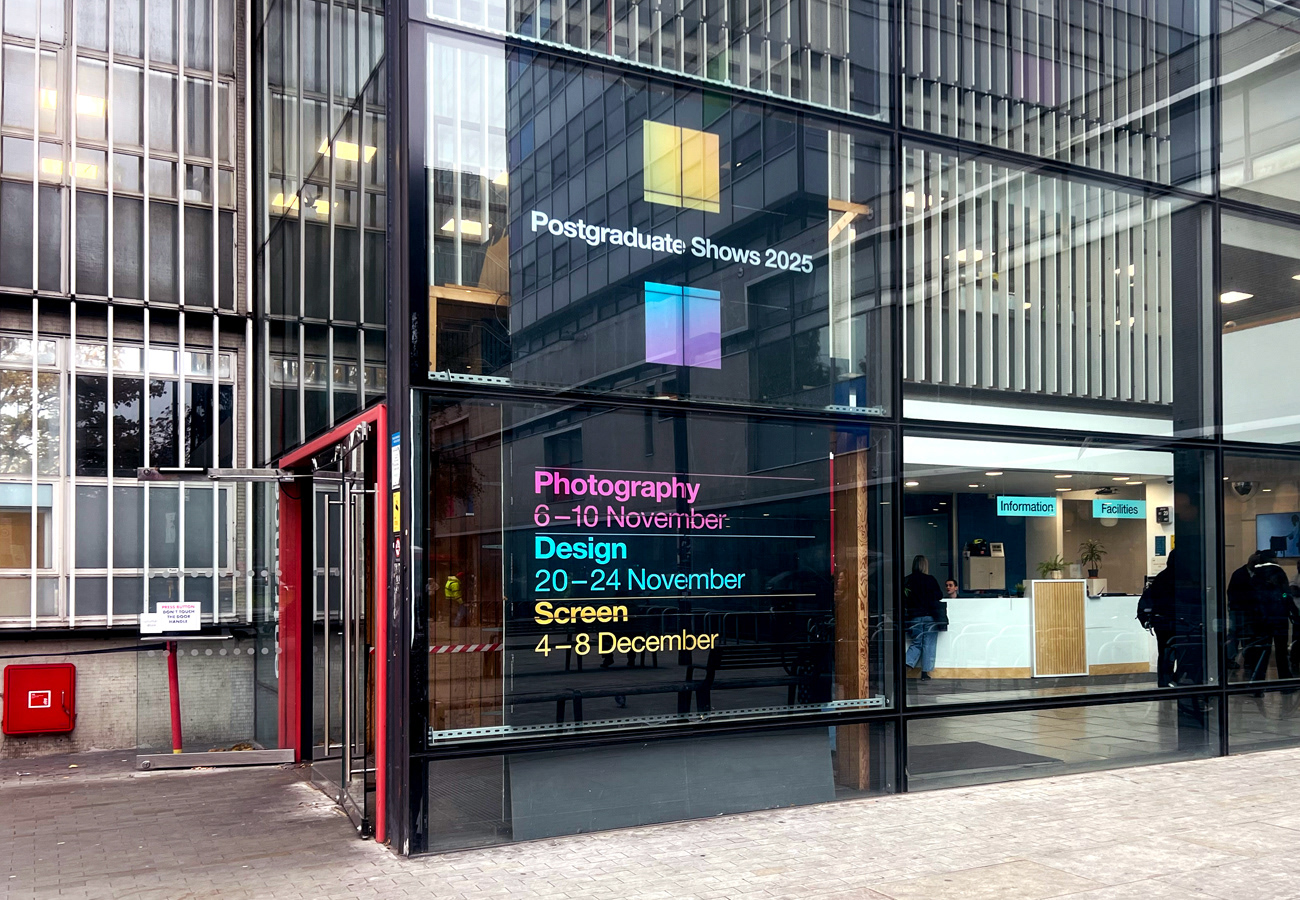 Each School was defined by a colour direction, this provided a sense of individuality during their particular exhibition & designated the School within the galleries for that particular period. The overall 'mother' brand image used both static & motion based blends, to merge all School colours on a dynamic & continuous loop to reflect the fluid nature of both the students, the subject areas & the college's creative environment. A new 'on brand' with UAL modular way-finding system was created to work across all exhibitions – with a neutral aesthetic to support the work.
