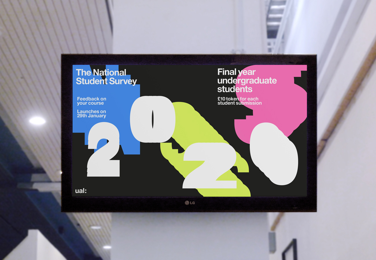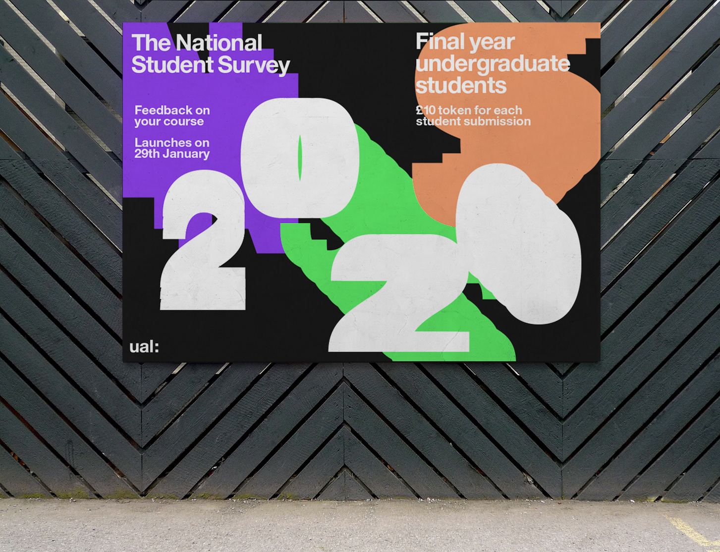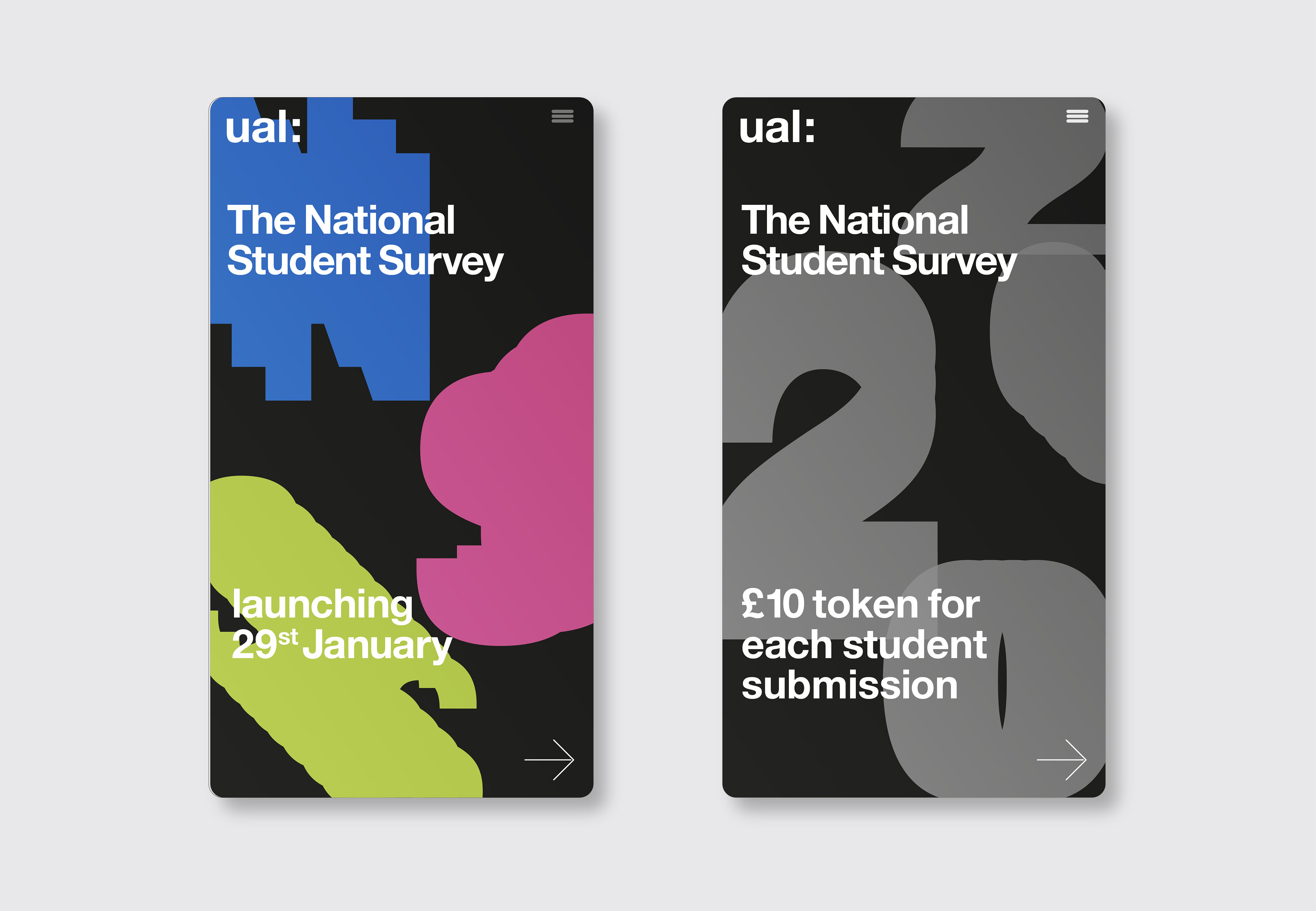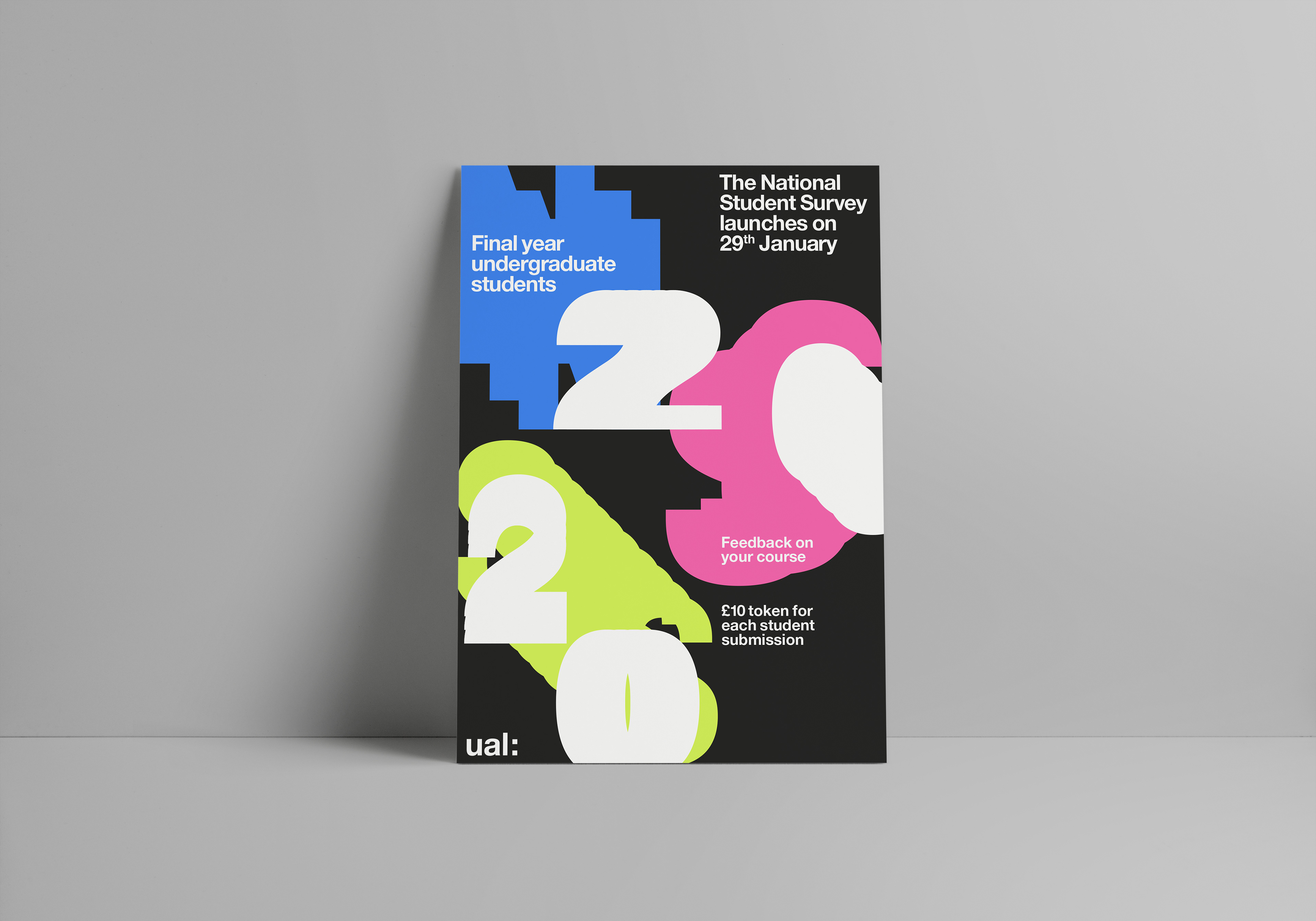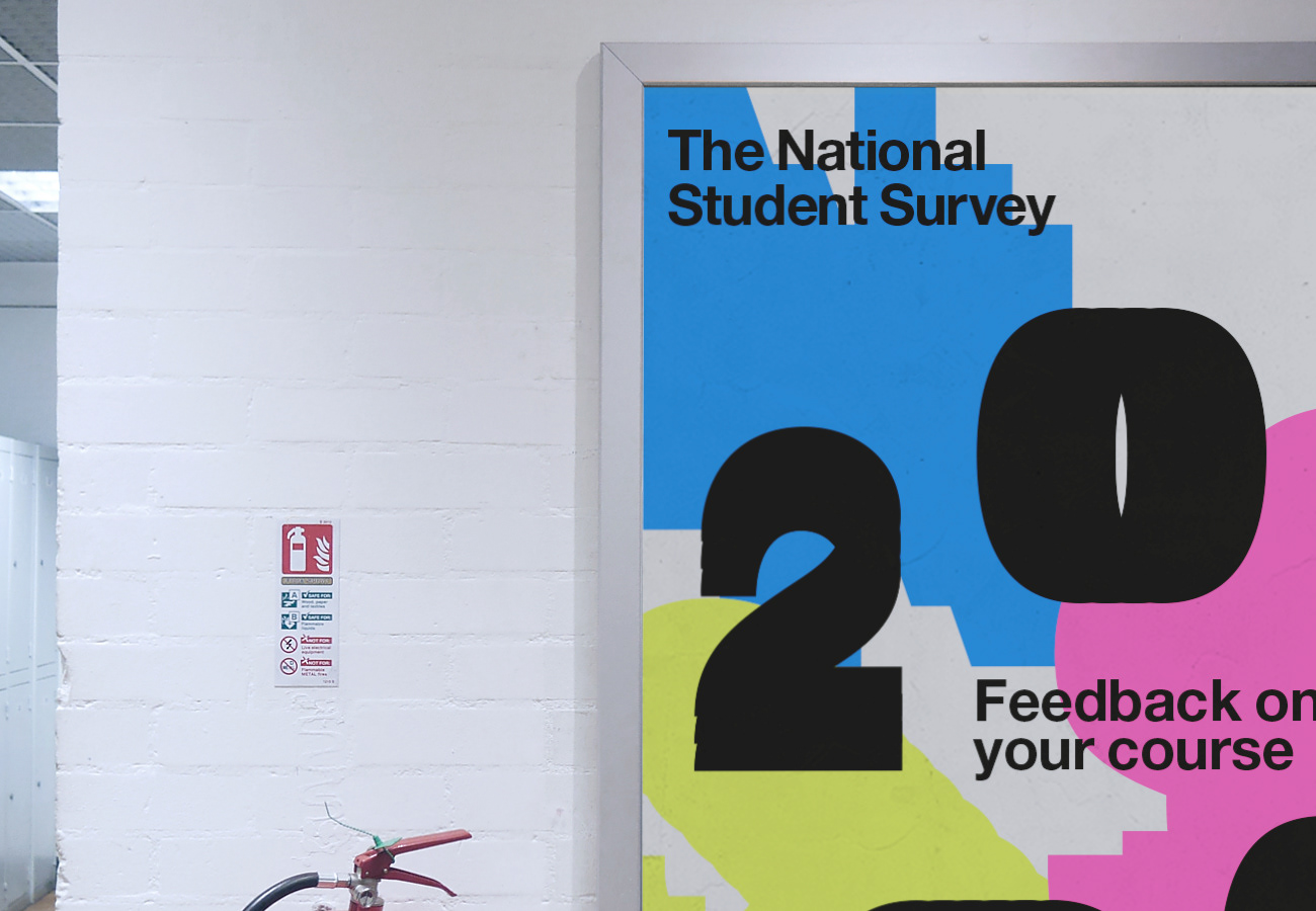 A digital and print campaign to encourage feedback for the NSS. We took a typographic approach to represent notions of 'connectivity & feedback' which is adaptable & responsive to a range of channels & formats.