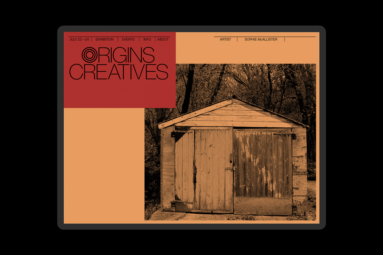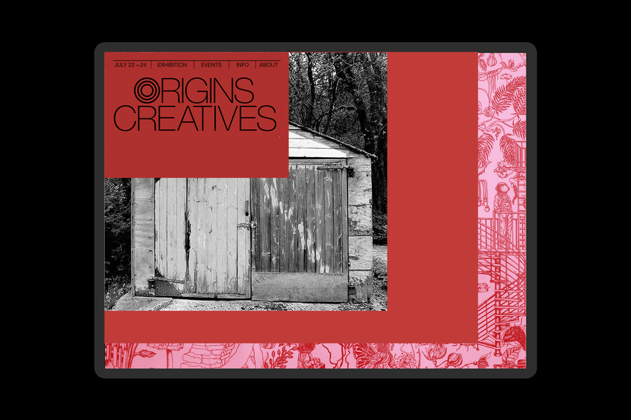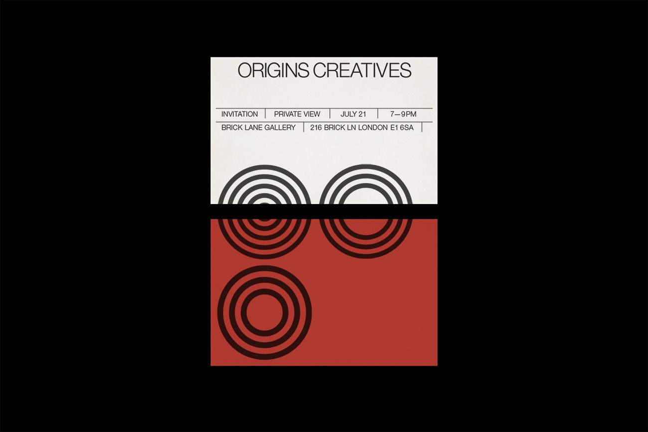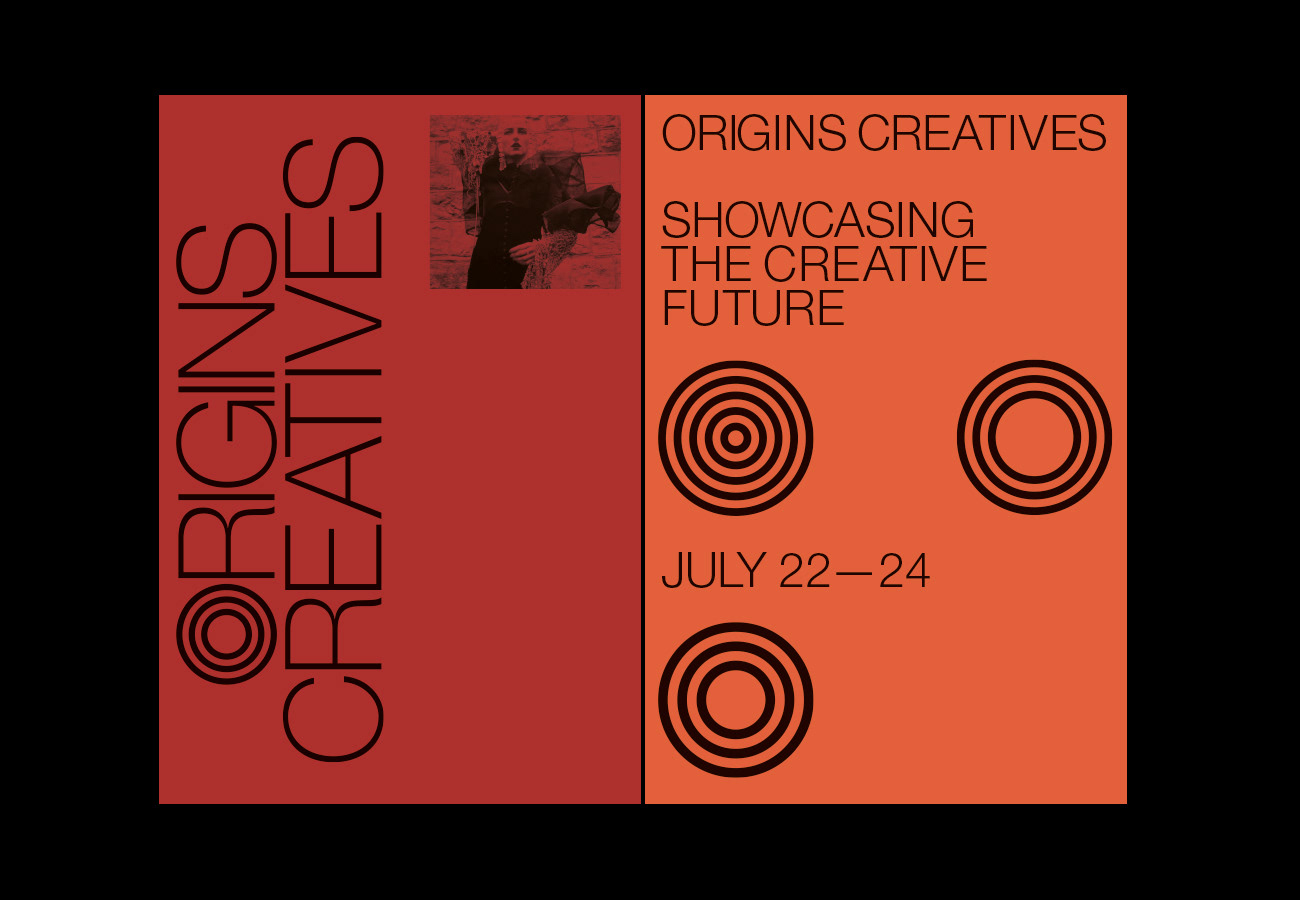 Identity and branding design for the Origins Creatives exhibition and events.